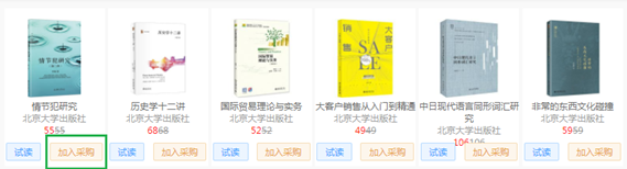 6.选书:点击任意分类或书单,即可进入对应书目列表页,选择心仪的图书,点击”加入采购“即可。